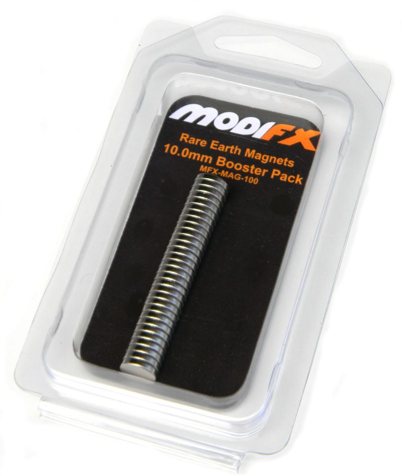 This Modifx Rare Earth Magnet Booster Pack contains thirty (30) magnets which are 10mm in Diametre and 2mm Thick. This is the ideal pack to start those wicked magnet conversions.